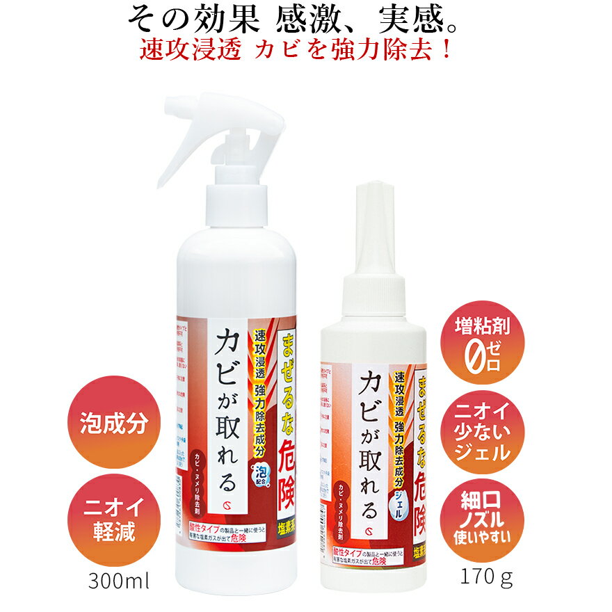 | カビ取り カビが取れる 泡スプレー300ml + カビ取りジェル 170g 黴取り カビ取り剤 プロ仕様 最強 お風呂 天井 パッキン 浴室 かび取り カビ かびとり ハイター ぬめり まな板 漂白 壁 クロス 黒カビ 排水溝 トイレ 3,200円 製品仕様商品名カビが取れる 300ml内容量300ml/本主な使用用途・カビ除去(ゴムパッキン・壁・タイル・クロス・目地・ガラスなど)プロ仕様・最強・最終兵器の液剤を必要とされているお掃除業者様、飲食店の店舗オーナー様などに高い評価を受けて... |