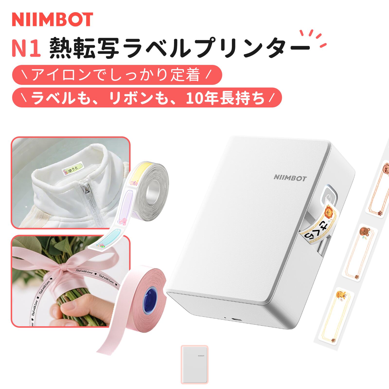 【OPENセール期間限定 6,680円→5,980円】 ニームボット NIIMBOT-N1-熱転写 ラベルプリンター ホワイト スマホテプラ ラベルライター スマホプリンター ミニプリンター アイロン対応 お名前シール リボン印刷 Bluetooth接続 小型 203DPI 高精細印刷 AndroidとIOS対応