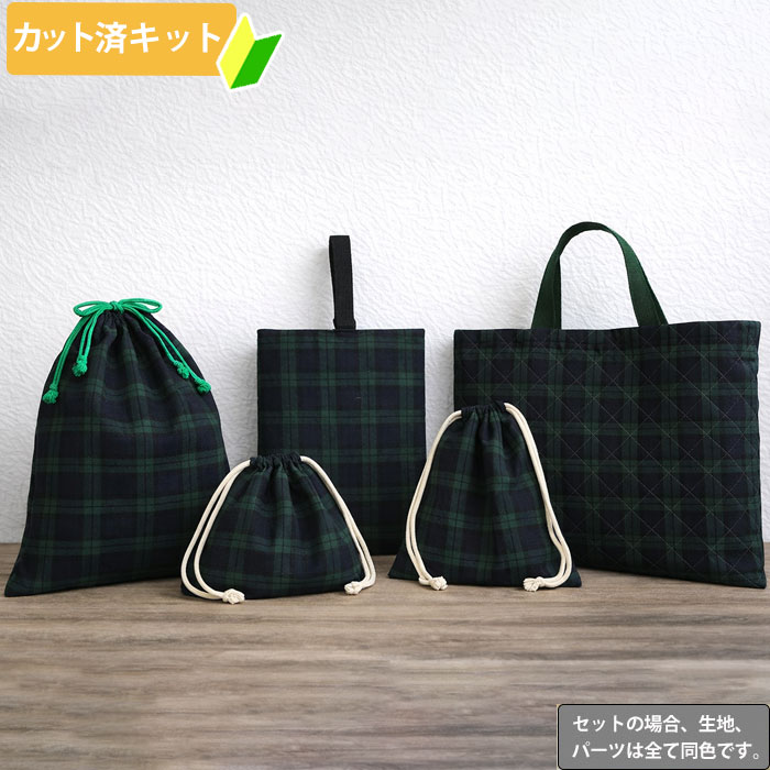 [カット済]タータンチェック 2色【お得な入園入学セット】 3点 5点 手作りキット キルティング生地 男の子 女の子 簡単 オーダー 生地 レッスンバッグ シューズバッグ 体操服袋 お弁当袋 給食袋 袋物 巾着 作り方付き 初心者 手芸キット 入園 準備 保育園 テッテ