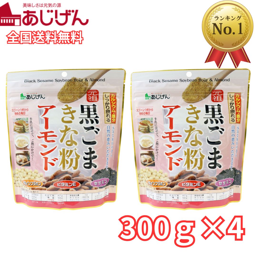 【5のつく日限定 30円OFF】 あじげんの黒ごま きな粉 元祖 アーモンド 300g 4個セット 【送料無料】 牛乳とよく合う 元祖黒ごまきな粉 大豆 黒ゴマ 黄粉 アーモンド 栄養豊富 お菓子 保存食 味源 黒ごまきな粉アーモンド 黒ごまアーモンドきな粉