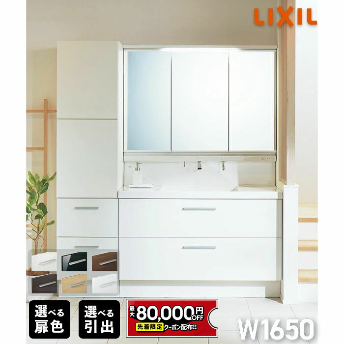 【最大8万円クーポン有】 洗面台 リクシル 1650mm 洗面化粧台 EV フルスライド スリムLED 165cm幅 奥行50cm LIXIL 洗面所 キャビネット コンパクト 収納 おしゃれ ピアラ ルミシス クレヴィ スリム CG図面無料作成 見積対応可 保証付【工事紹介可能】
