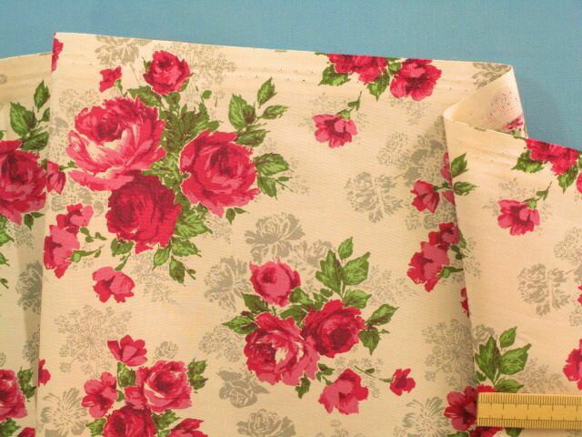 YUWA 綿プリント生地花・ベージュ×濃ピンク(100cm幅 1m)
