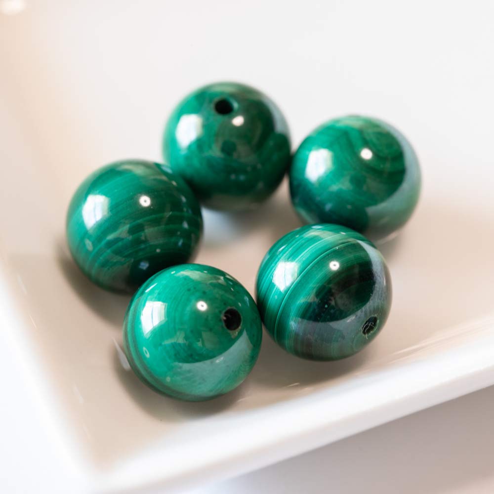 【国内検品済み】天然石 マラカイト 孔雀石 10mm 5粒 S-005 両穴貫通 くじゃくいし 丸玉 深緑 グリーン パワーストーン 魔よけ お守り 邪気を払う 想像力 直観力 スピリチュアル